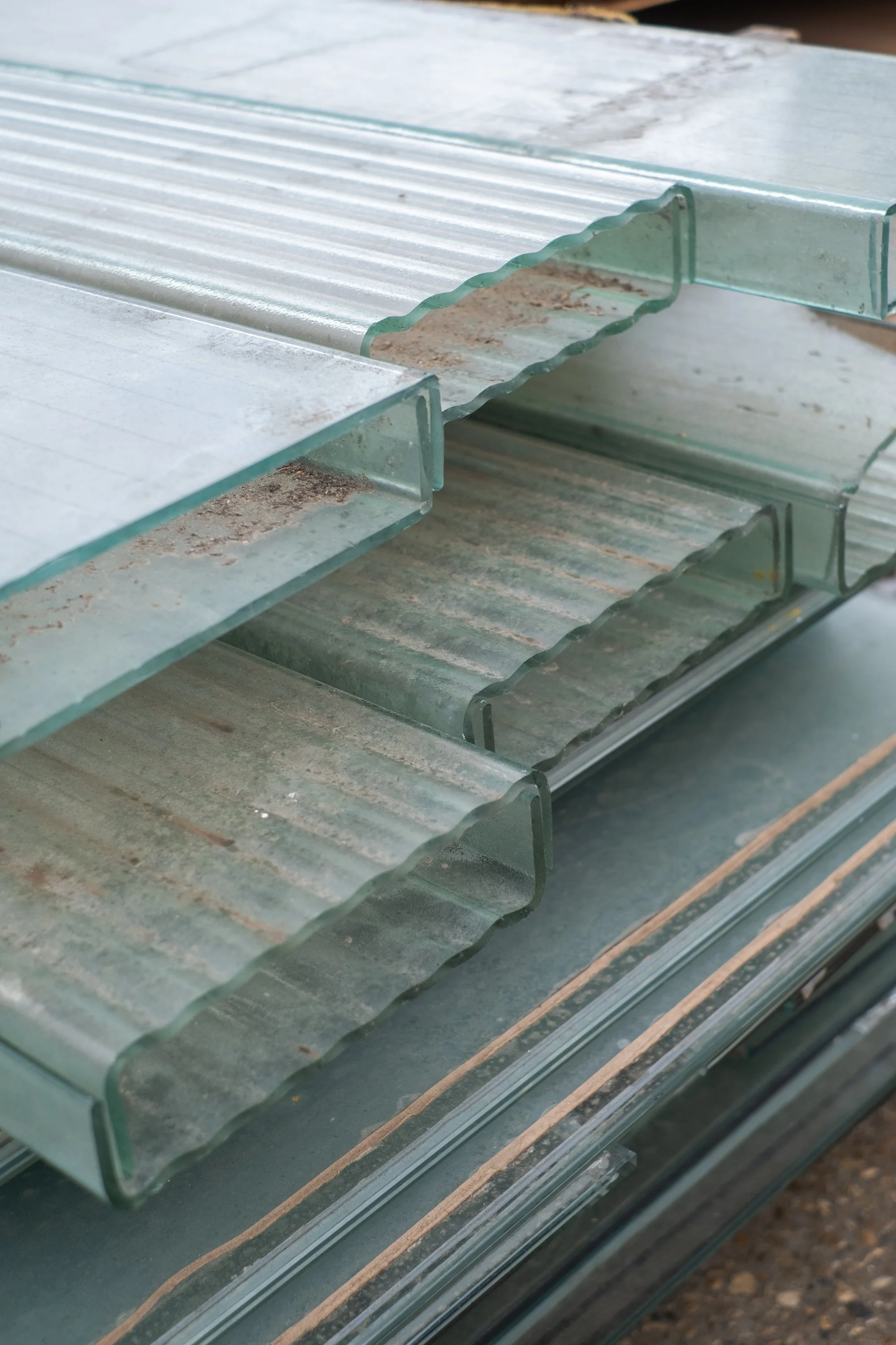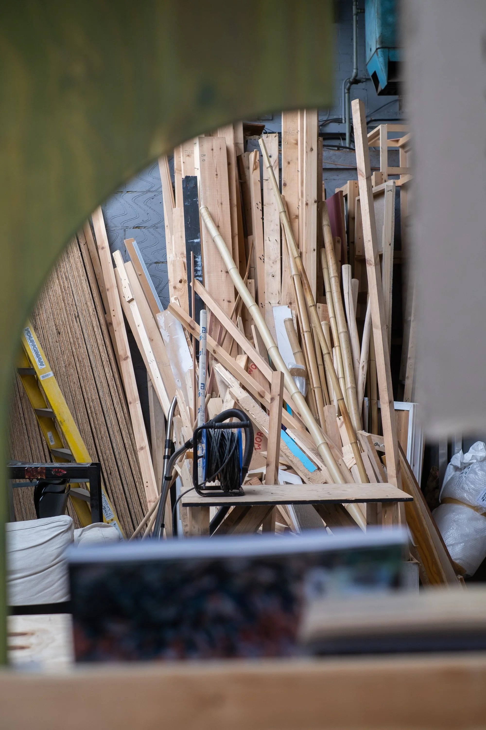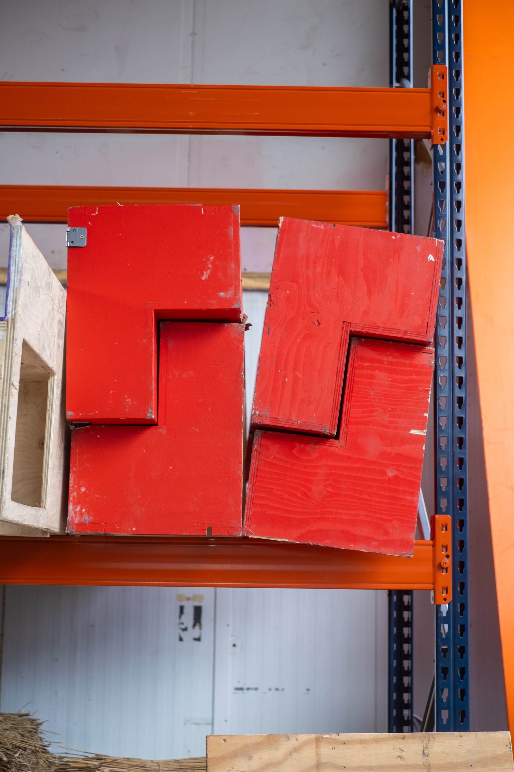 The storage yard feels somewhere between a depot and an archive. Shelves are stacked with museum plinths, surplus sheets of glass from major construction projects, and felled trees that would otherwise have been chipped - all held here, waiting for a second life.
